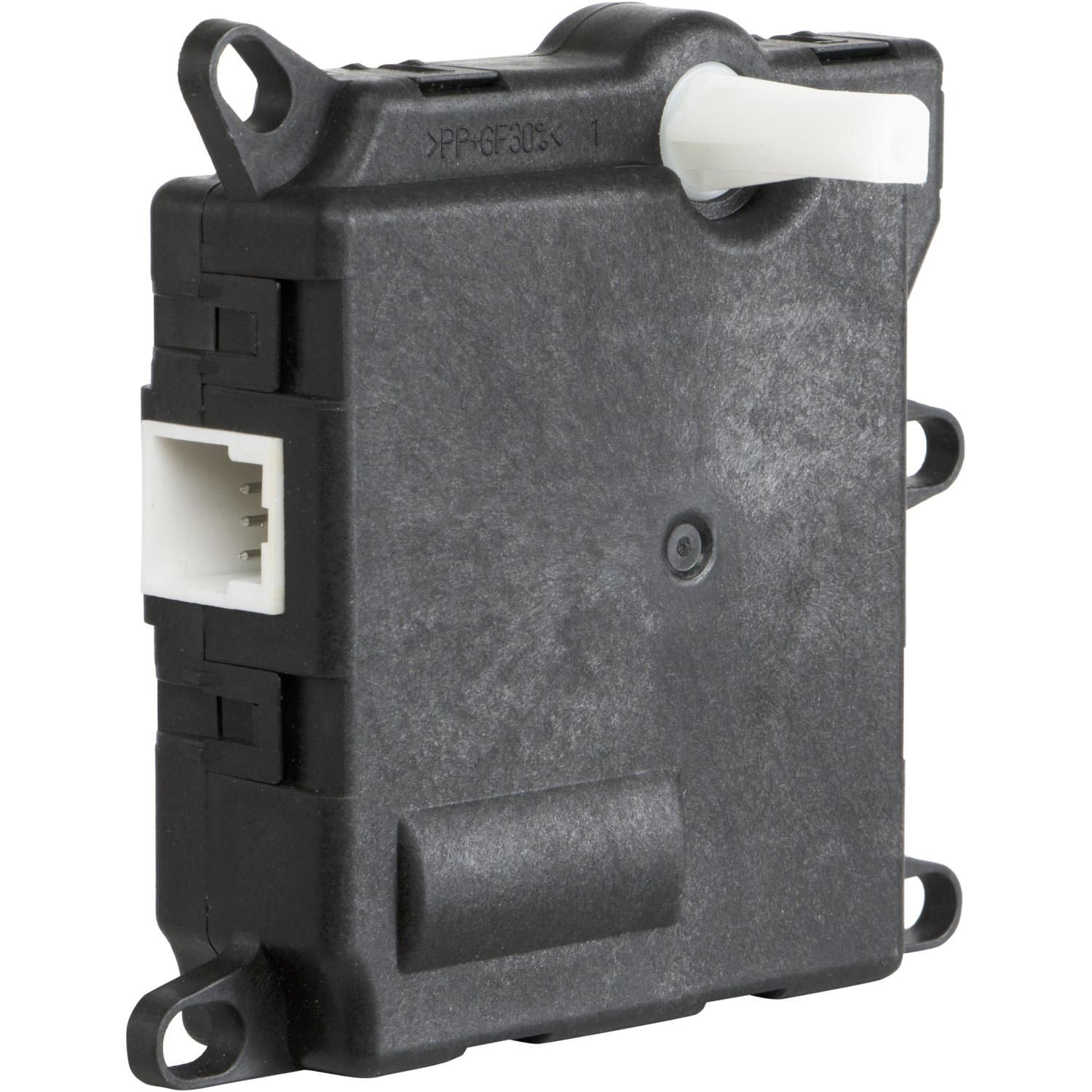 A blend door actuator is made up of an electric motor that turns a plastic gear set in one direction or another which is connected to an air control door pivot at the final drive of the unit.